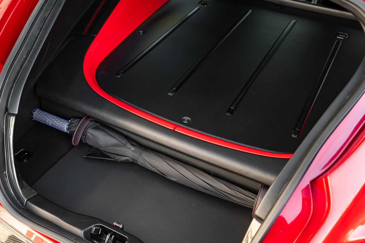 2019 (19 Reg) Aston Martin Vanquish V12 Zagato Shooting Brake | Finished in Lava Red with Pure Black and Spicy Red Leather Interior with Spicy Red Stitching | 20inch Black Bronze Tinted Diamond Turned Wheels with Black Brake Calipers | Villa D' Este Package | Bang & Olufsen BeoSound Audio System | Bonnet Louvres in Gloss Carbon | Carbon Fibre Roof Panel | Exterior Bodypack in Carbon Fibre | Side Fenderettes in Carbon Fibre | Electrically Dimming Sunroof | Bronze Side Strake | Heated Seats | Reversing Camera | Duotone Interior Environment | Exterior Door Handles in Body Colour | Mirror Caps in Body Colour | One-77 Full Leather Steering Wheel | Seat Embroidery with Z Logo | Seatbelts in Warm Charcoal | Alarm System Upgrade | Shadow Bronze / Anodized Gold Interior Finishers | Tailpipe Finisher in Metallic Black | Apple CarPlay.
