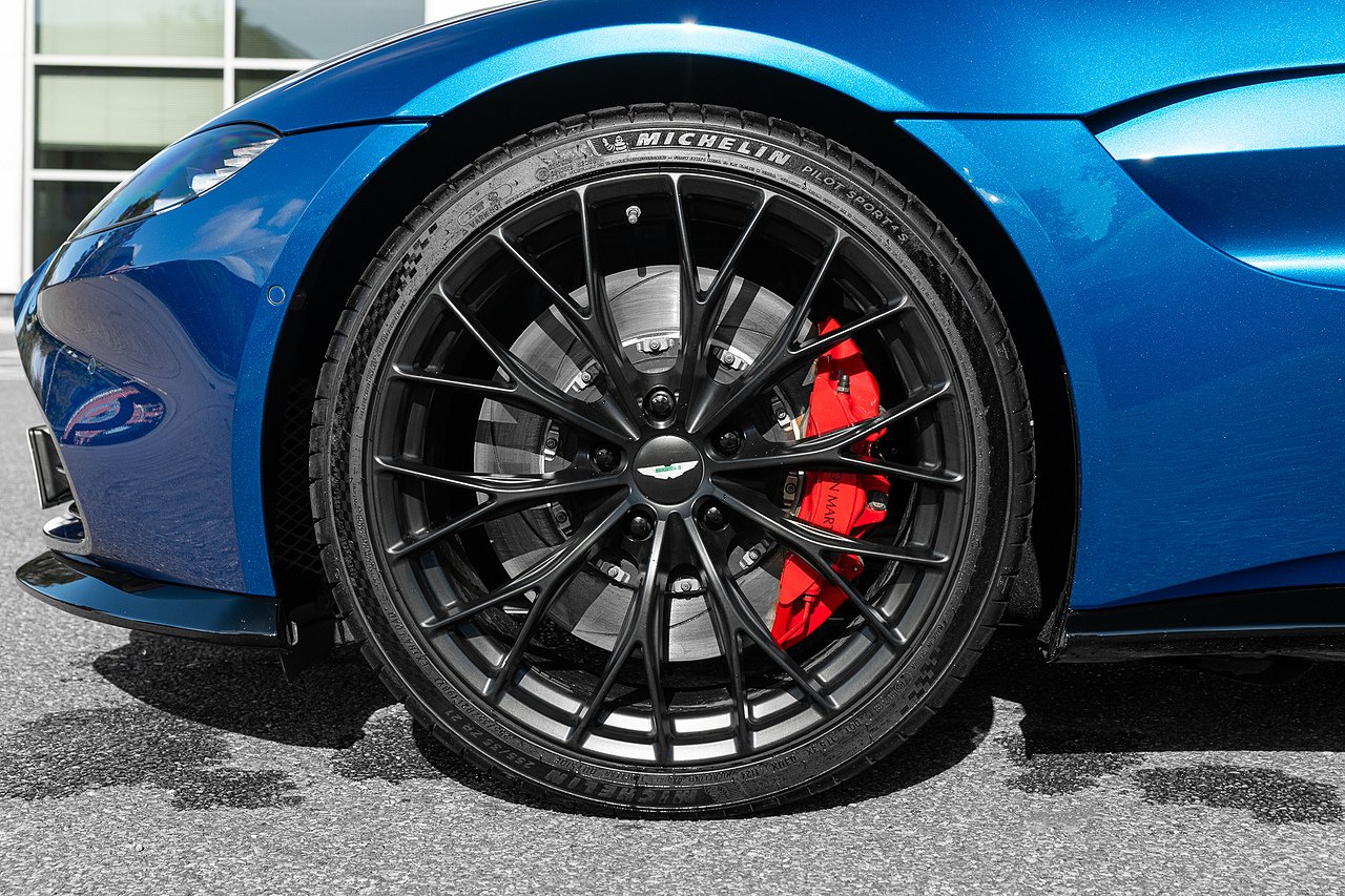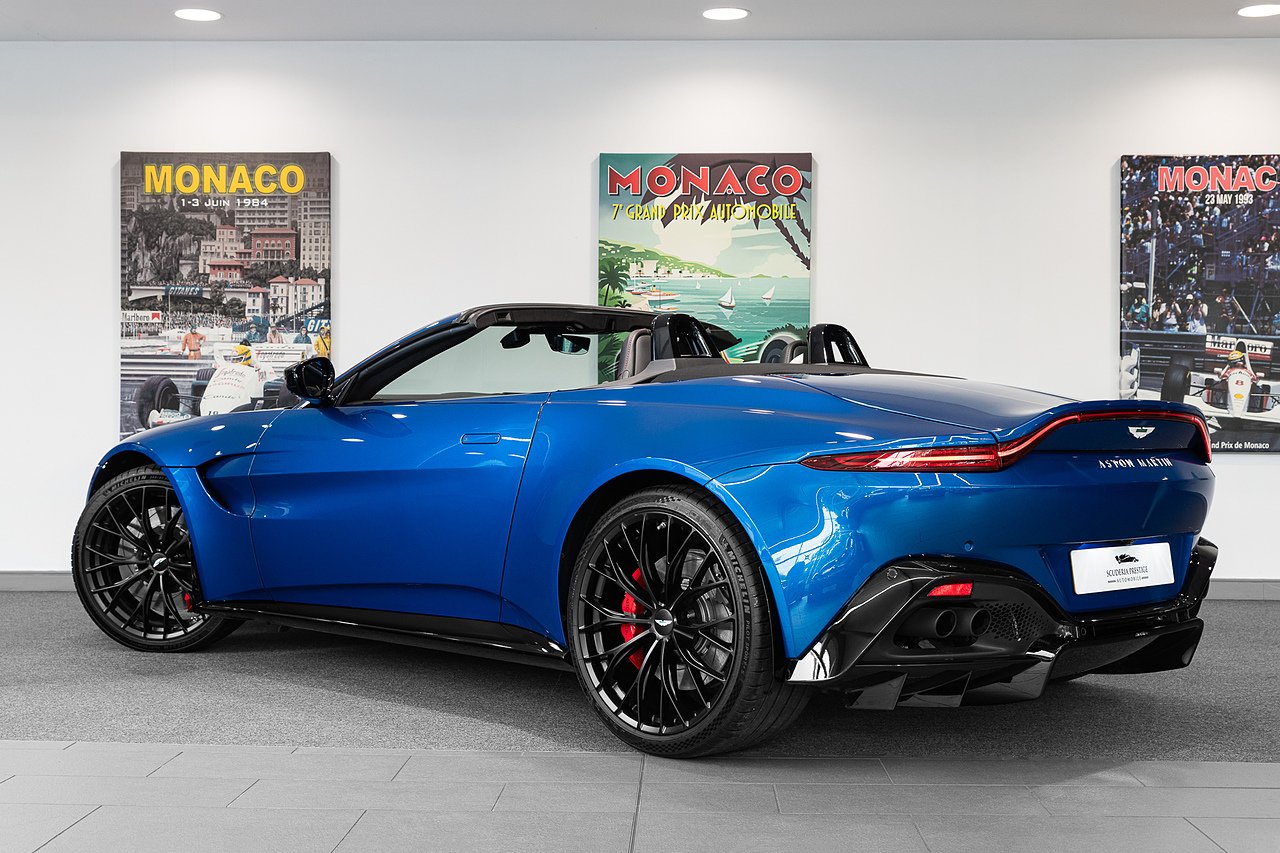2022 (71 Reg) Aston Martin Vantage V8 Roadster | Finished in Ming Blue with Obsidian Black Leather Interior with Spicy Red Stitching | 21inch Satin Black Alloy Wheels with Red Brake Calipers | OPF Delete Pipes | Heated Front Seats | Gloss Black and Silver Interior Package | Perimeter Camera System | Tracking Device Cobra | Gloss Black Bodypack | Upper and Lower Exterior Black Pack | Auto Park Assist | Glass Corporate Switches | Matt Black Stainless Steel Exhaust Tailpipe Finisher | Gloss Black Trim Inlay | Front Parking Sensors | Auto Dimming Rear View Mirror | Memory Seats | Embossed Wings on Seats | Comfort Seats | Sports Steering Wheel | Blind Spot Assistance | Bluetooth | Black Hood Mesh.