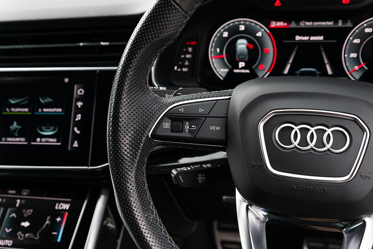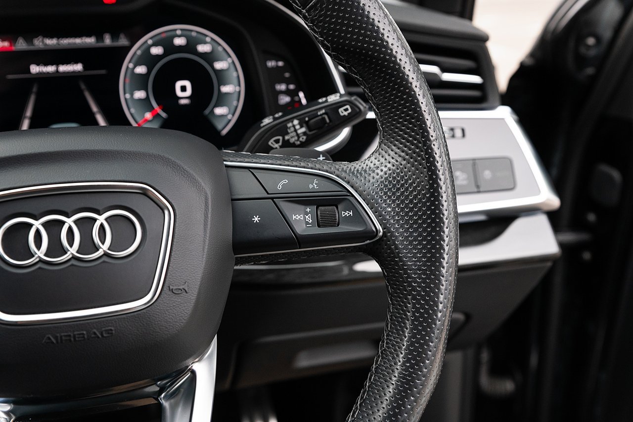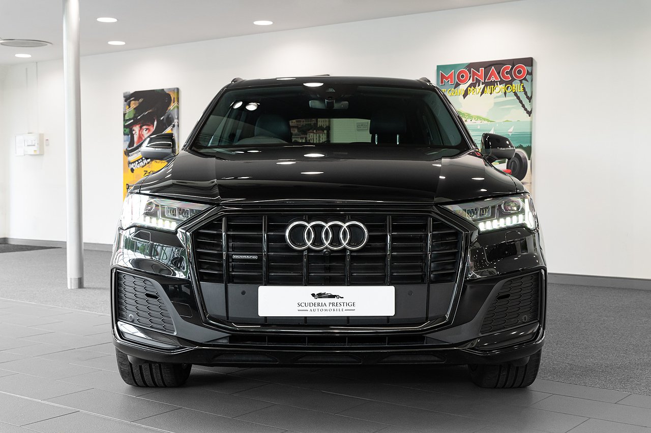 2021 (71 Reg) Audi Q7 V6 50 Black Edition | Finished in Mythos Black Metallic with Black Valcona Leather Interior | 21inch 5-Spoke Blade Design Alloy Wheels in Anthracite Black with Gloss Turned Finish | Comfort and Sound Package | Audi Virtual Cockpit Plus | 85-Litre Fuel Tank | Body-Coloured Door Mirrors | Polished Oak Trim with Grey Finish | Heated Front Seats | Audi Music Interface | Audi Phone Box Light | Bluetooth Interface | Rear View Camera | Audi Matrix LED Headlights | 2-Zone Automatic Climate Control | 3-Spoke Sports Multifunction Flat Bottom Leather Steering Wheel | LED Ambient Lighting | Illuminated Door Sill Trims | Audi Smartphone Interface with Apple CarPlay and Android Auto | Privacy Glass.
