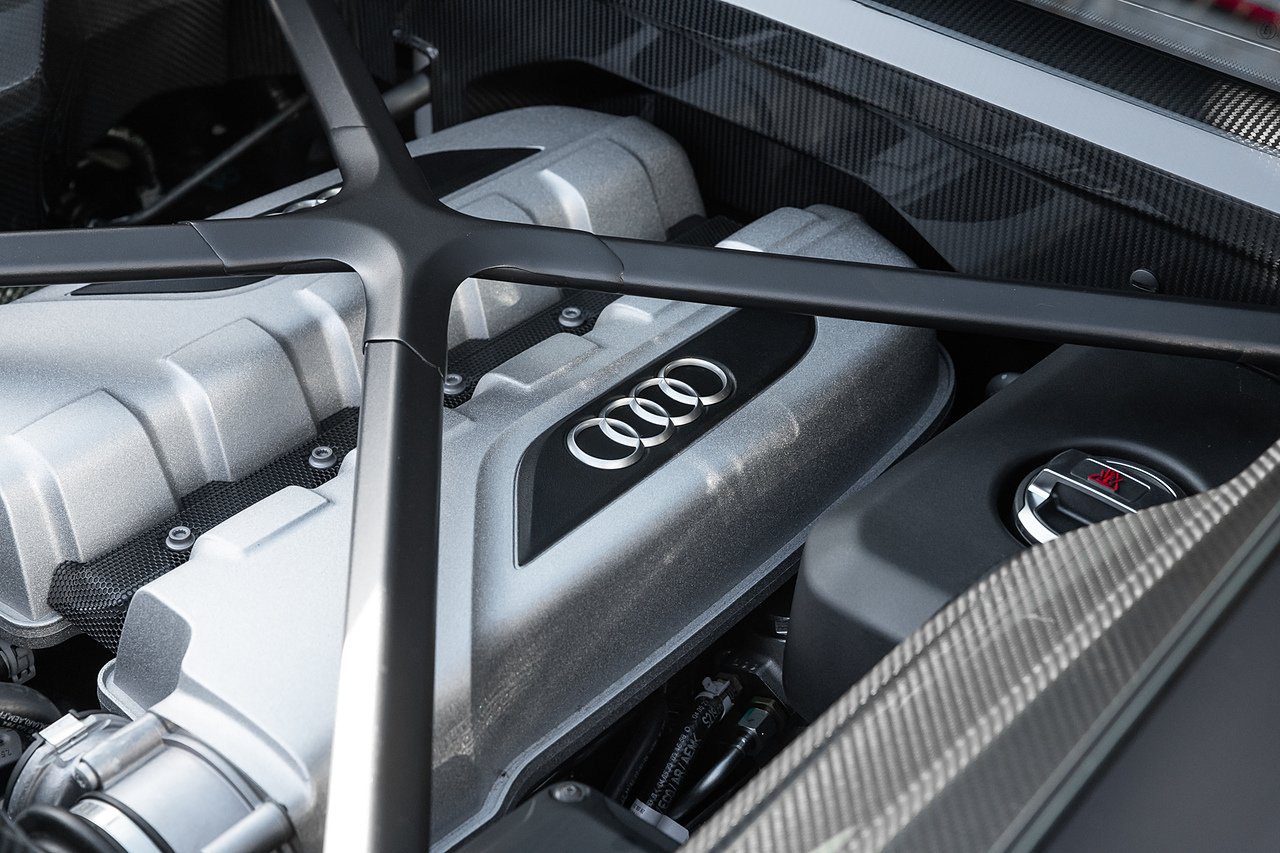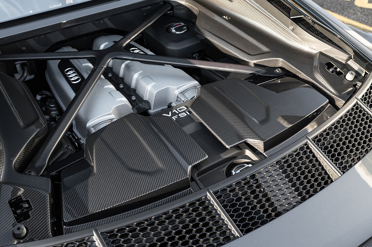 2024 (74 Reg) Audi R8 V10 Performance Edition | Finished in Daytona Grey Pearlescent with Black Extended Fine Nappa Leather Interior | 20inch Audi Sport 5-Twin-Spoke Alloy Wheels in Gloss Anthracite Black with Diamond Cut Finish | Gloss Carbon Fibre Engine Bay Trim | Exterior Style Package in Gloss Carbon Fibre | Carbon Fibre Door Mirrors | Carbon Fibre Door Sill Trims | Carbon Fibre Twill Interior Inlays | Carbon Fibre GT Front and Rear Canards | Extended Exterior Inlays in Gloss Carbon Fibre | Sideblades in Gloss Carbon Fibre | Audi Magnetic Ride | OPF Delete | Audi Sports Exhaust System | Bang & Olufsen Advanced Sound System | Heated R8 Sports Seats | Alcantara Headlining with Stitched Diamond Design | Pneumatic Seat Backrest and Side Bolster Adjustment | Extended Exterior Style Package including Audi Emblems and Badges in Black High Gloss | Audi Park Assistance Pack | Audi Smartphone Interface | Audi Phone Box with Wireless Charging | Parking System Plus with Reversing Camera | Cruise Control.