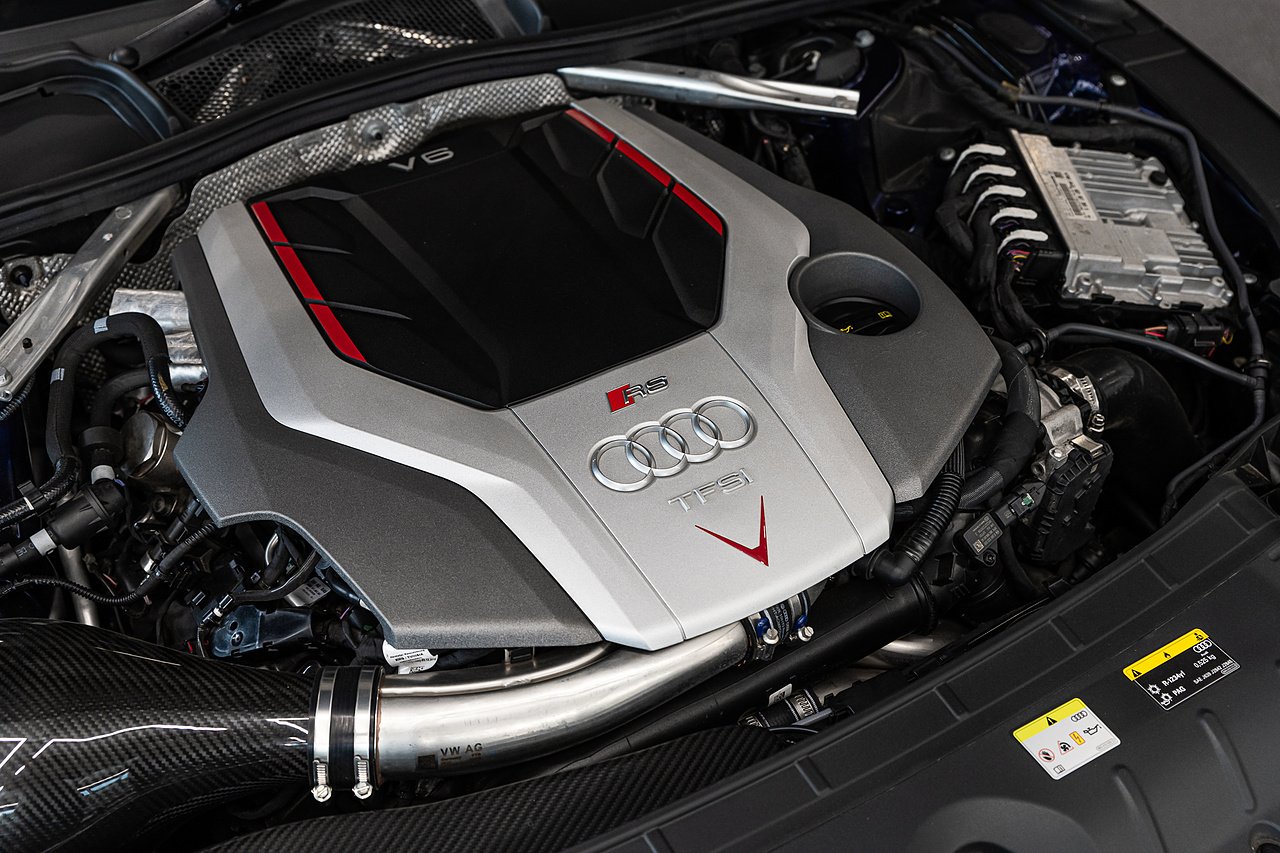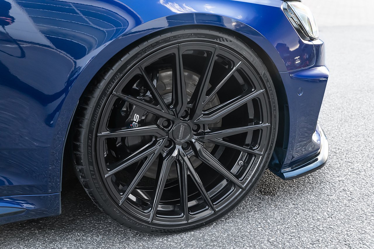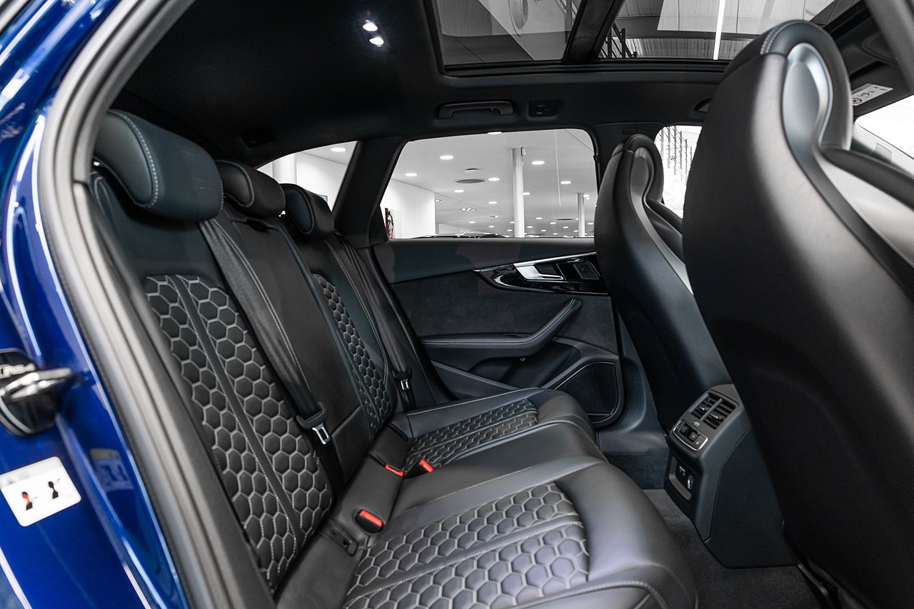 2020 (20 Reg) Audi RS4 Avant Vorsprung | Finished in Navarra Blue Metallic with Black Fine Nappa Leather Interior with Rock Grey Honeycomb Contrast Stitching | 21inch Vossen Hybrid Forged Series HF-4T Wheels in Gloss Black | Full Milltek Non Resonated Exhaust System with Black Tips | Milltek Cat-less Downpipes | Milltek Mid Box | MSS Adjustable Springs | QST Stage 2 ECU TCU Combo | Wagner Charge Cooler System | 034 Motorsports Brake Upgrade | Eventuri Intake System | Dark Ghost Gloss Black Front Splitter | Top Speed Limiter Raised to 174MPH | Panoramic Glass Sunroof | RS Sports Suspension Plus | Pneumatic Massage Function | Head-Up Display | Bang & Olufsen 3D Sound System | Seat Heater for Front and Rear Seats Separately Controlled | Driver Assistance Pack-Tour | Parking Assistance Package | Park Assist | Front and Rear-View Camera System with Two Side Cameras | Sports Package | Extended Interior LED Light Package | Dynamic Steering | Keyless Entry System | Black Styling Package with Black Rings | Black Exterior Mirror Housings | Black Roof Rails | Large Front Spoiler | Traffic Sign Recognition | Adaptive Cruise Control with Speed Limiter | Lane Keeping System | Piano Black Interior Inlays.