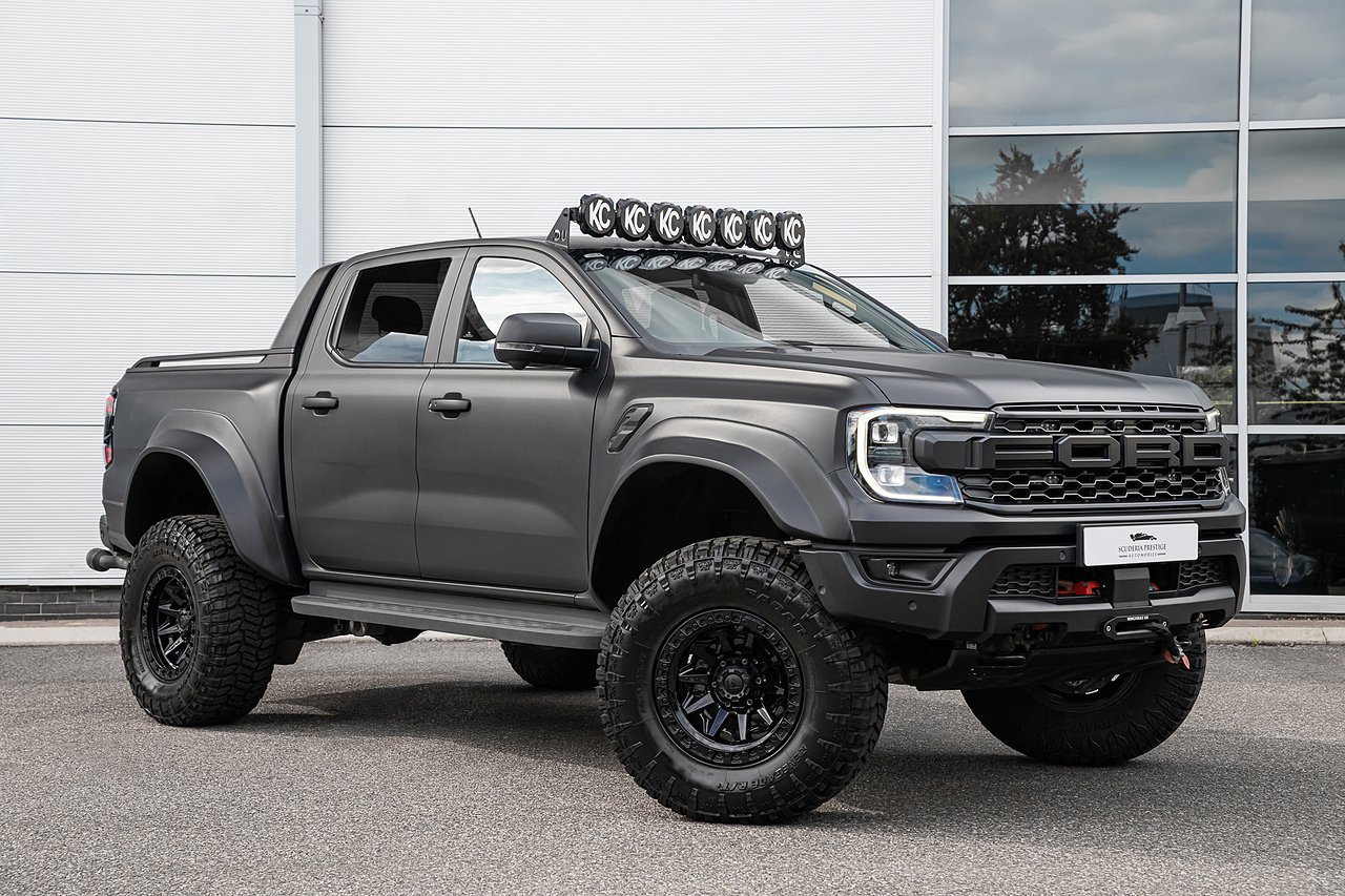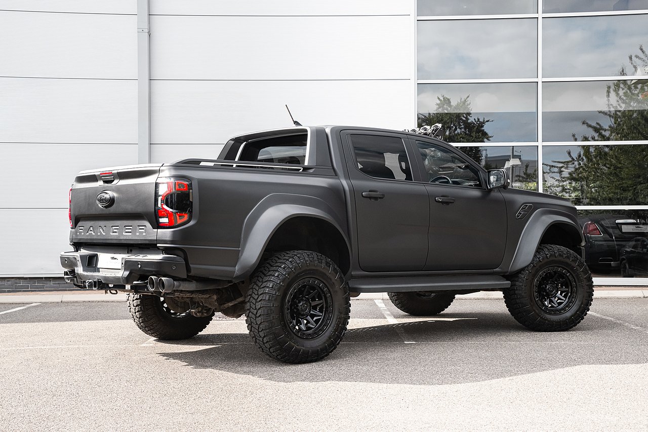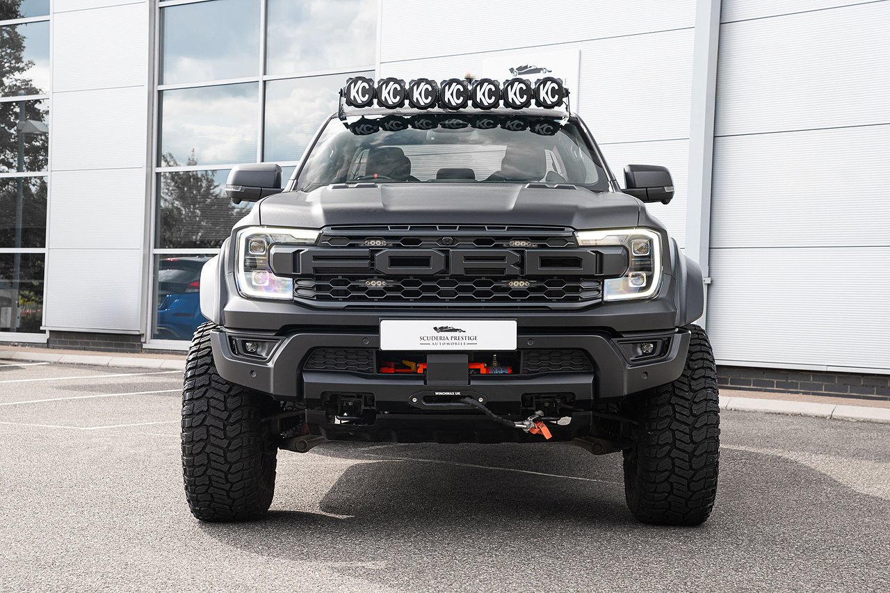2023 (23 Reg) Ford Ranger Raptor EcoBoost Pickup Double Cab 4WD | Finished in Matt LineX Raptor Paint with Super Matte Ebony Leather Interior | 17inch Black Alloy Wheels with Offroad Tyres | Exterior Dress Up Pack | Technology Package | Front Winch | Wide Flare Arches | Exhaust System | KC Spotlights with Covers in White | LineX/Raptor Respray | Speaker/Siren with Lights | 2” Suspension Lift | 2” Body Lift | Bang & Olufsen Sound System | Side Steps | Apple CarPlay | 360 Degree Camera | Advanced Automated Parking System | Blind Spot Monitoring with Trailering | Front Parking Aid | Lane Change Warning and Aid | Reverse Parking Aid | Dual Power Heated Fold Black Mirrors with Puddle Lamps | Extra Large Wheel Arch Flares | Front and Rear Towing Hooks | Privacy Glass | Trailer Tow Pack | Electrochromic Inside Mirror | Heated Front Seats | Front Seat Pack | Functional Upgrade Pack | Heavy Duty Terrain Pack | Under Body Protection | Cruise Control | Adjustable Dampers.