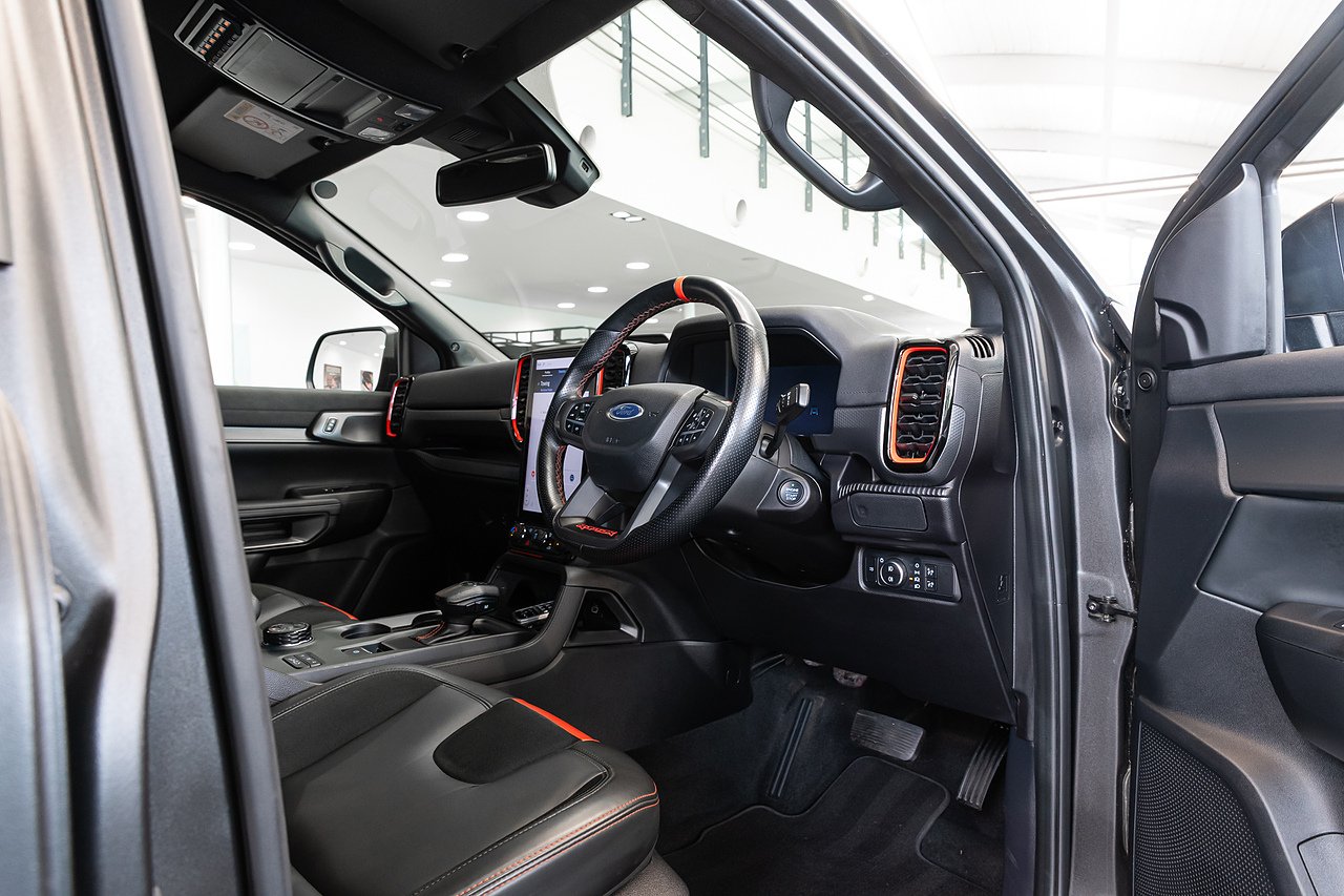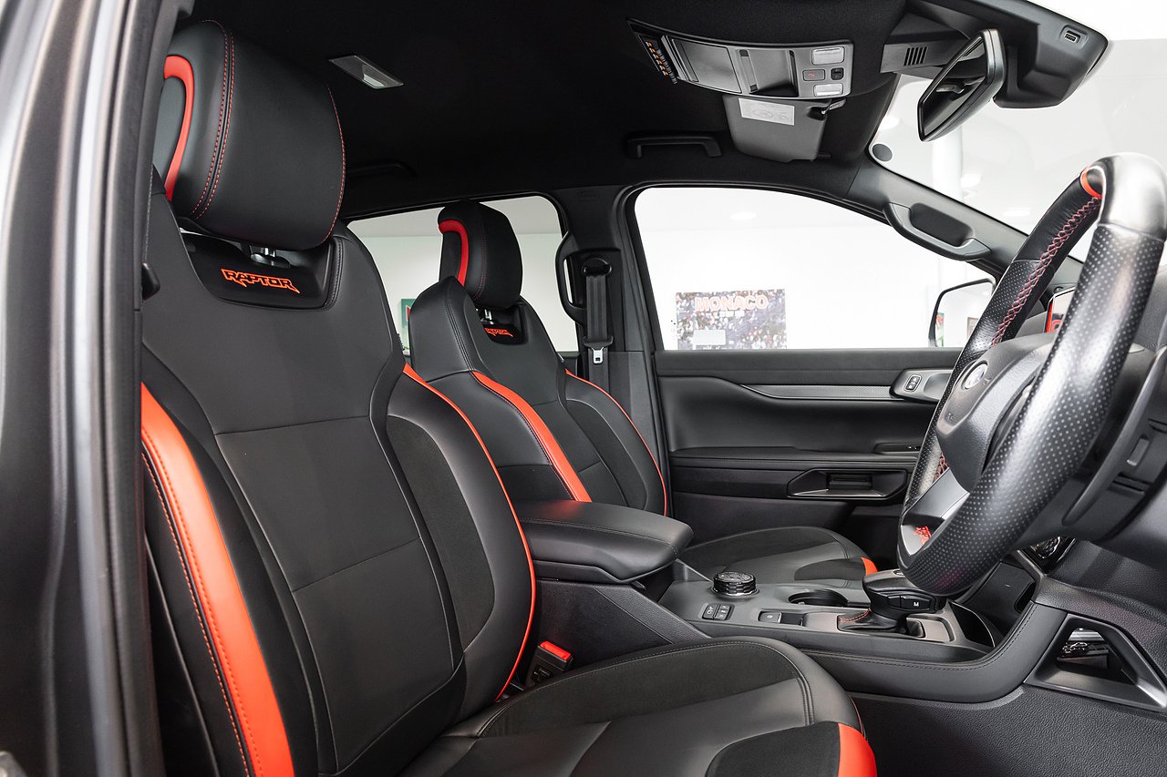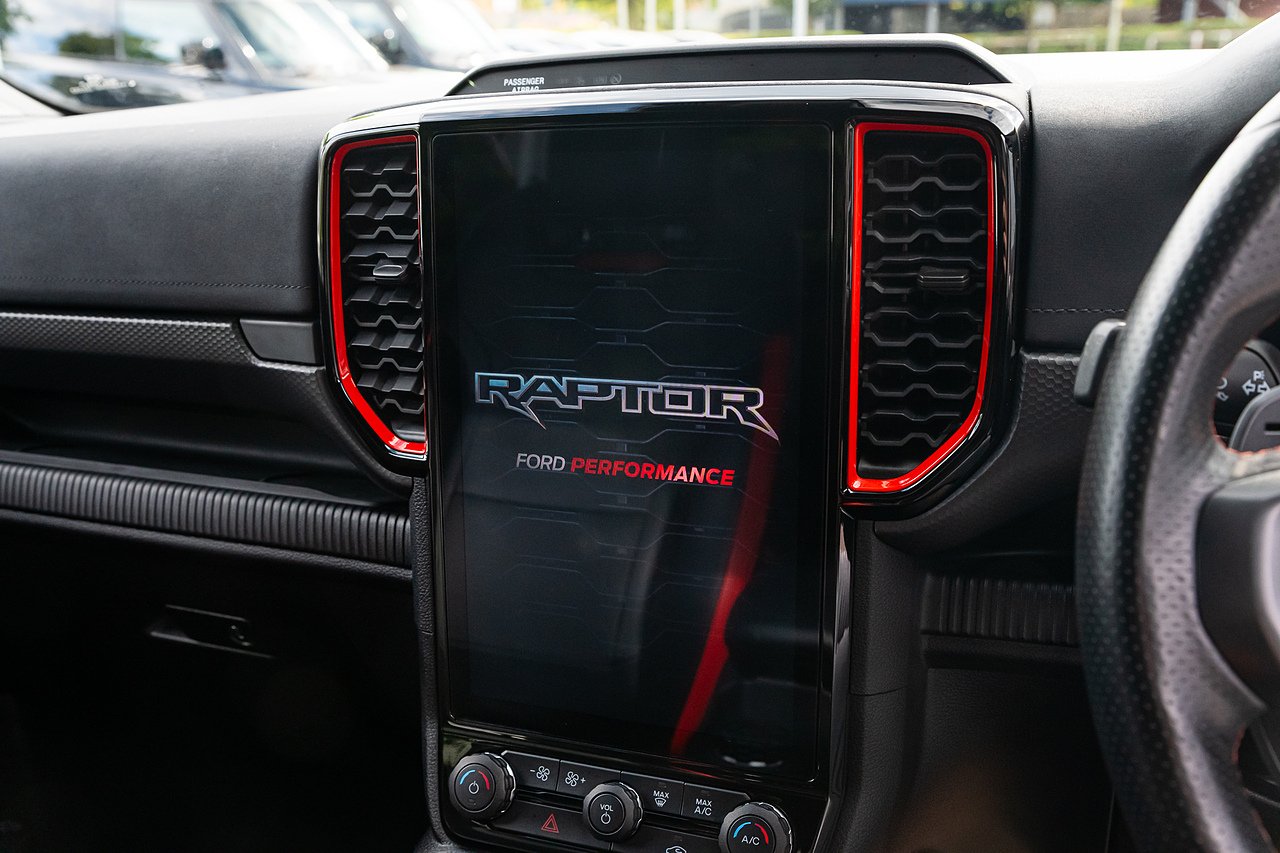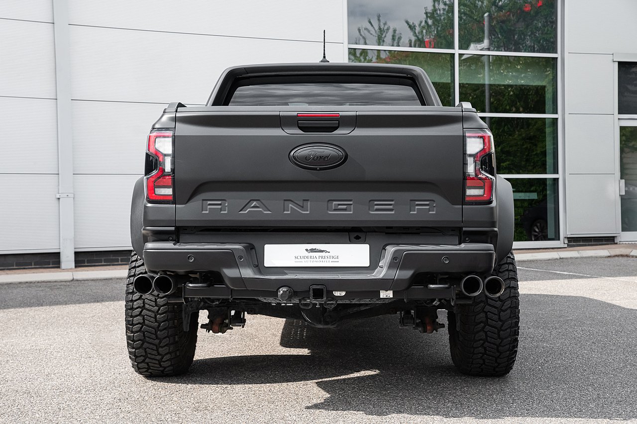 2023 (23 Reg) Ford Ranger Raptor EcoBoost Pickup Double Cab 4WD | Finished in Matt LineX Raptor Paint with Super Matte Ebony Leather Interior | 17inch Black Alloy Wheels with Offroad Tyres | Exterior Dress Up Pack | Technology Package | Front Winch | Wide Flare Arches | Exhaust System | KC Spotlights with Covers in White | LineX/Raptor Respray | Speaker/Siren with Lights | 2” Suspension Lift | 2” Body Lift | Bang & Olufsen Sound System | Side Steps | Apple CarPlay | 360 Degree Camera | Advanced Automated Parking System | Blind Spot Monitoring with Trailering | Front Parking Aid | Lane Change Warning and Aid | Reverse Parking Aid | Dual Power Heated Fold Black Mirrors with Puddle Lamps | Extra Large Wheel Arch Flares | Front and Rear Towing Hooks | Privacy Glass | Trailer Tow Pack | Electrochromic Inside Mirror | Heated Front Seats | Front Seat Pack | Functional Upgrade Pack | Heavy Duty Terrain Pack | Under Body Protection | Cruise Control | Adjustable Dampers.