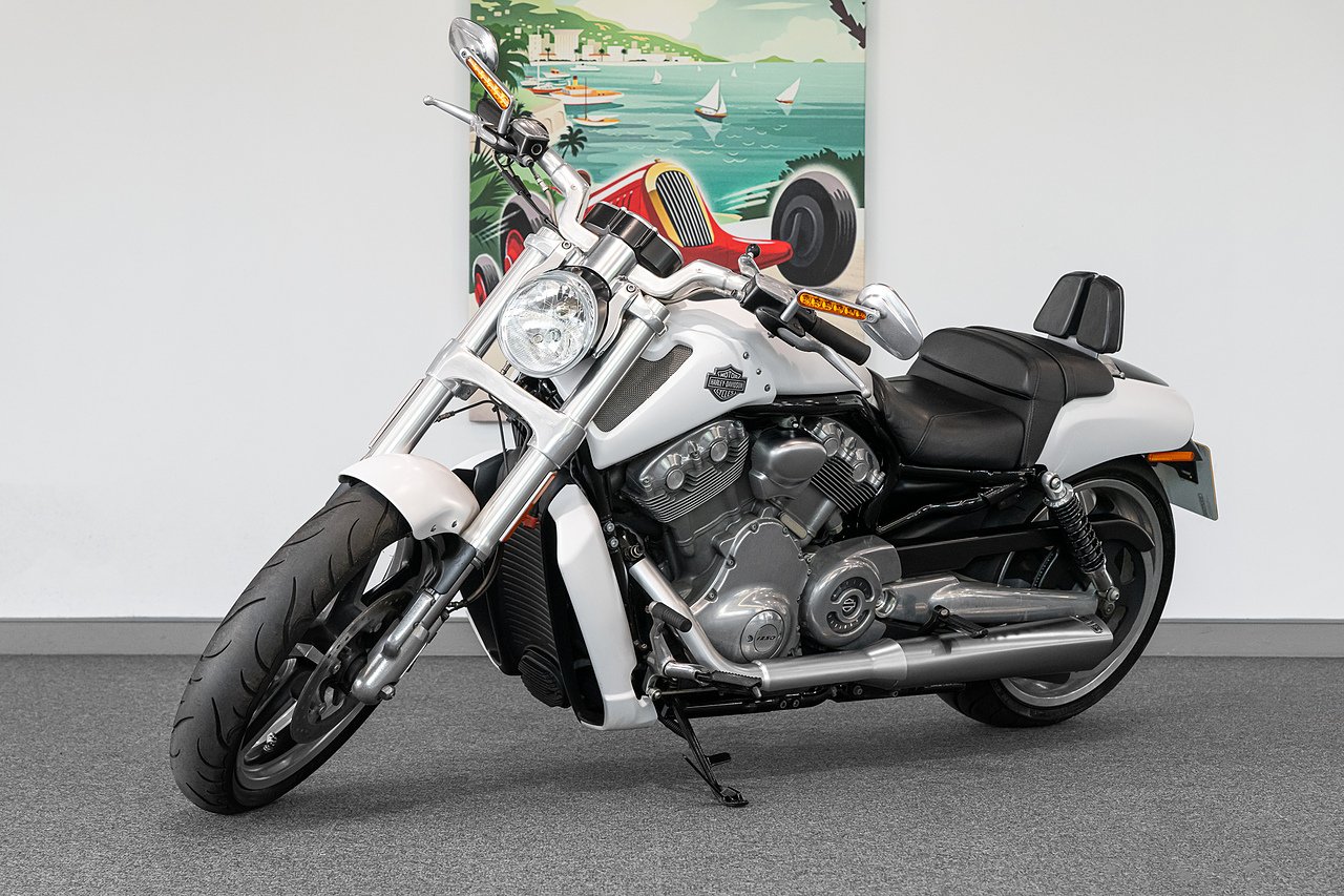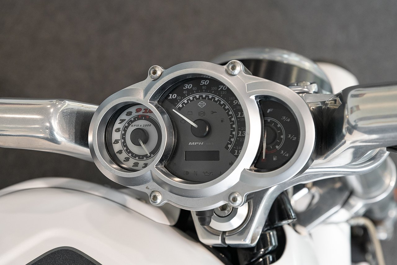 2011 (11 Reg) Harley Davidson V-Rod VRSCF Muscle | Finished in White Hot Denim | 19inch Front Wheel and 18inch Rear Wheel | Vance Hines Upgraded Exhaust System | Power: 120hp | 111nm of Torque | 5-Speed Manual Gearbox | 675mm Seat Height | 289kg Kerb Weight (Dry) and 302kg Kerb Weight (Wet).