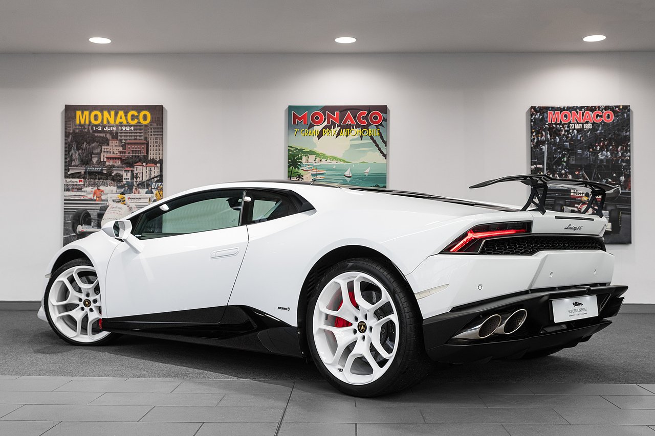 2014 (64 Reg) Lamborghini Huracan V10 LP 610-4 Coupe | Finished in Bianco Monocerus with Nero Ade and Bianco Leda Sportivo Bicolour Leather Interior | 20inch Bianco Rims with Red Brake Calipers | Carbon Fibre Rear Spoiler | Front Suspension Lift | Full Electrically and Adjustable and Heated Seats | Lamborghini Branding Package | Front and Rear Parking Sensors and Rear View Camera | Roof Lining and A-Pillars in Alcantara | Bicolour Sportivo with Leather Package | Nero Ade Steering Wheel | Nero Ade Seat Belts | Nero Ade / Bianco Leda Floor Mats with Leather Piping and Double Stitching.