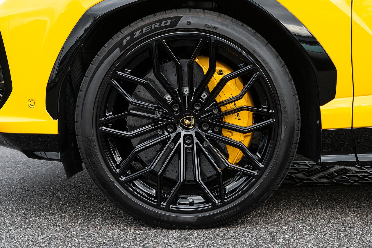 2025 (75 Reg) Lamborghini Urus SE | Finished in Giallo Auge with Nero Ade Unicolour Leather Interior | 23inch Galanthus Shiny Black Rims with Yellow Brake Calipers | Big Interior Carbon Fibre Package | Bang & Olufsen Advanced 3D Audio System | Electric Panorama Roof | Full Electric Front Seats with Massage and Ventilation | Sport Heated Steering Wheel in Full Corsa Tex with Dark Chrome Bezel and Red Marker | Interior Dark Package | Style Package in Full High Gloss Black | Parking Assistant Package with Remote Park Assist | Rear Heated Seats | Ambient Light Package | Lamborghini ANIMA with Off-Road Modes | Rear Lamborghini Logo in High Gloss Black Ad Personam | Rear Spoiler in High Gloss Black | Performante Trim on Leather Seats | Privacy Acoustic and Heated Insulated Glass | Apple CarPlay | Black Anodized Treatment on Aluminium Inserts | Black Matt Exhaust Tailpipes Ad Personam | Door Handles in Shiny Black | Embroidered Logo on Headrests | Mirror Housings in Shiny Black | Vehicle Tracking System | Vehicle Support Pack | Optional Stitching | Optional Stitching on Steering Wheel | Cross Stitching.
