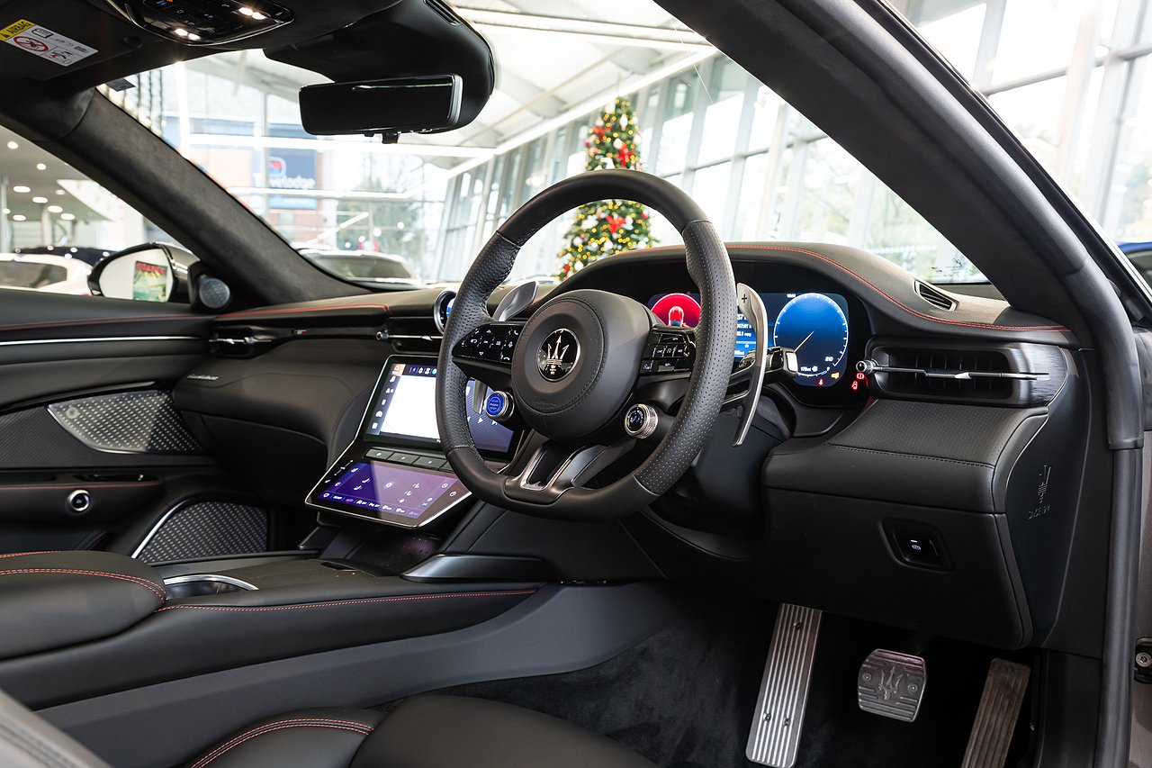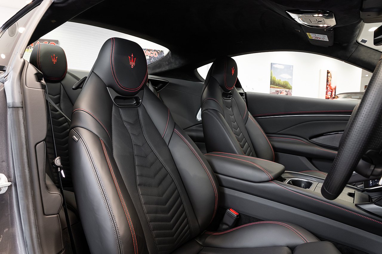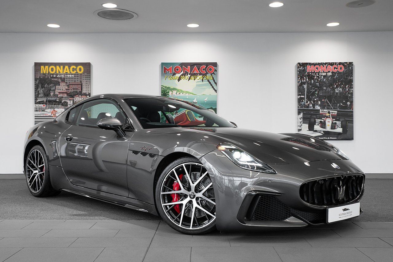 2024 (24 Reg) Maserati Granturismo V6 Trofeo | Finished in Grigio Maratea with Black Full Grain Leather Interior and Red Stitching | 20inch Front 21inch Rear Astreo Glossy Black Alloy Wheels with Red Painted Brake Calipers | SuperSprint Exhaust Midpipe | Ventilated Front Seats | Heated Sports Steering Wheel | Sonus Faber Premium Sound System | 3D Carbon Fibre Trim | Tech Assistance Package (Frameless Digital Rear View Mirror and Head-Up Display) | Sport Design Package (Aluminium/Stainless Steel Sport Pedals and Aluminium Footrest / Illuminated Steel Door Sills | Maserati Sport Exhaust System | Trofeo Exterior Styling with Carbon Fibre Side Skirts, Front and Rear Bumper Inserts | Wireless Phone Charger | Wi-Fi Vehicle Hotspot Sim 4G | Stitched Trident on Headrests | Full LED Matric Headlights in Dark Finish | Active Cruise Control | Rear View Camera with Dynamic Grid Lines | Front and Rear Parking Sensors | Heated Front Seats | Apple CarPlay and Android Auto.