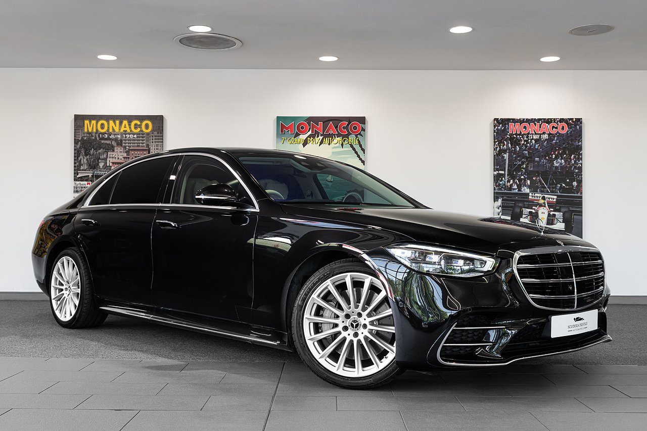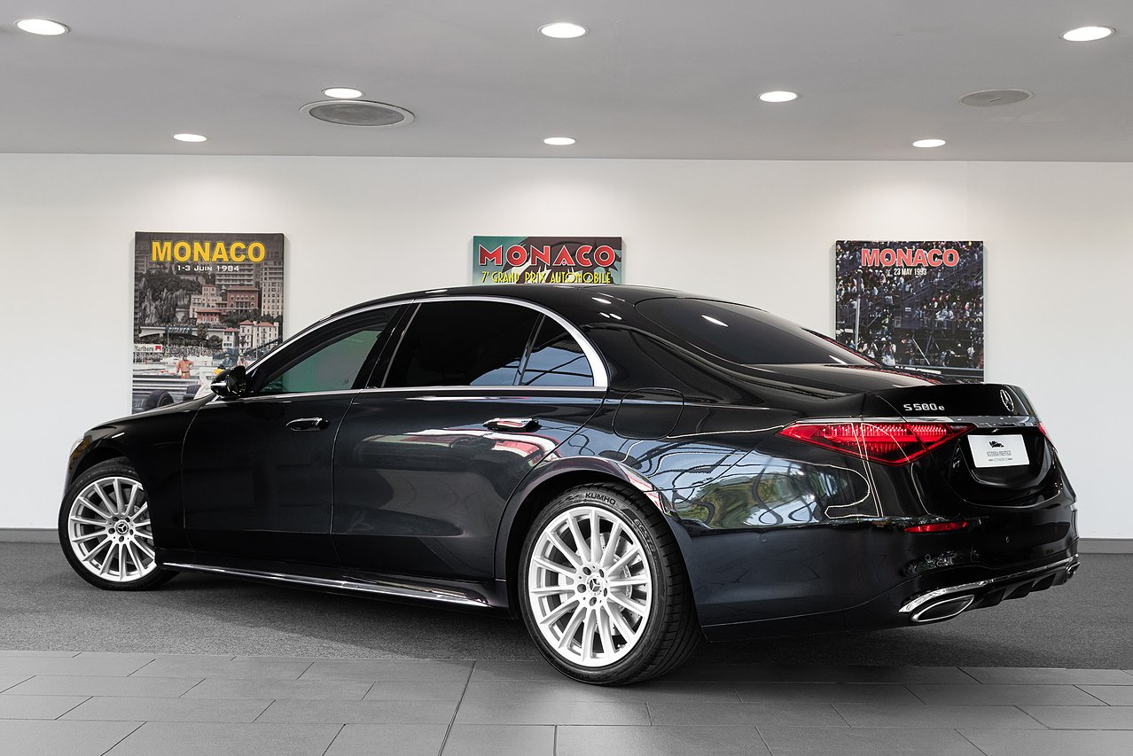 2022 (22 Reg) Mercedes-Benz S Class S580Le V6 AMG Line | Finished in Obsidian Black Metallic with Beige Nappa Leather Interior | 20inch AMG Multi-Spoke Alloy Wheels Painted Silver | Climatised Front Seats | Panoramic Sliding Sunroof | Heated Leather Steering Wheel | Head-Up Display with Augmented Reality | Burmester Premium Surround Sound System | Front and Rear Comfort Seat Heating | Driving Assistance Package | Rear Seat Climate Control | Dynamic Front Seats | Luxury Front Head Restraints | Front Wireless Telephone Charging | Smartphone Package with Apple CarPlay and Android Auto | Adaptive Cruise Control Plus | Active Parking Assist | Active Lane Keeping Assist | Memory Package | 3D Combination Display | Heated Windscreen | AMG Styling | Contactless Gesture Control in Front | Dark Tinted Glass | Magic Vision Control including Heated Windshield Washer System | Premium Ambiance Illumination | Fineline Anthracite Open Grain Wood Interior Trim | Illuminated Door Sills.