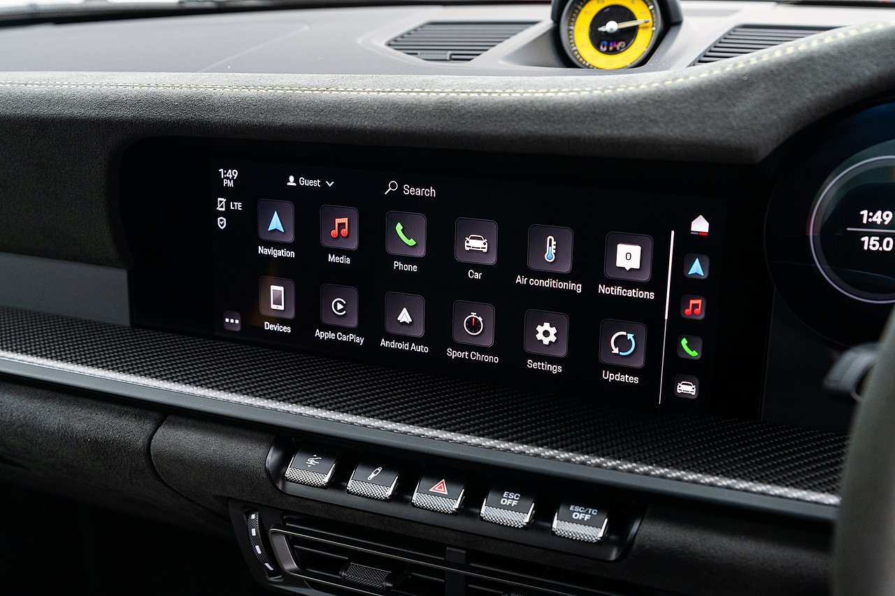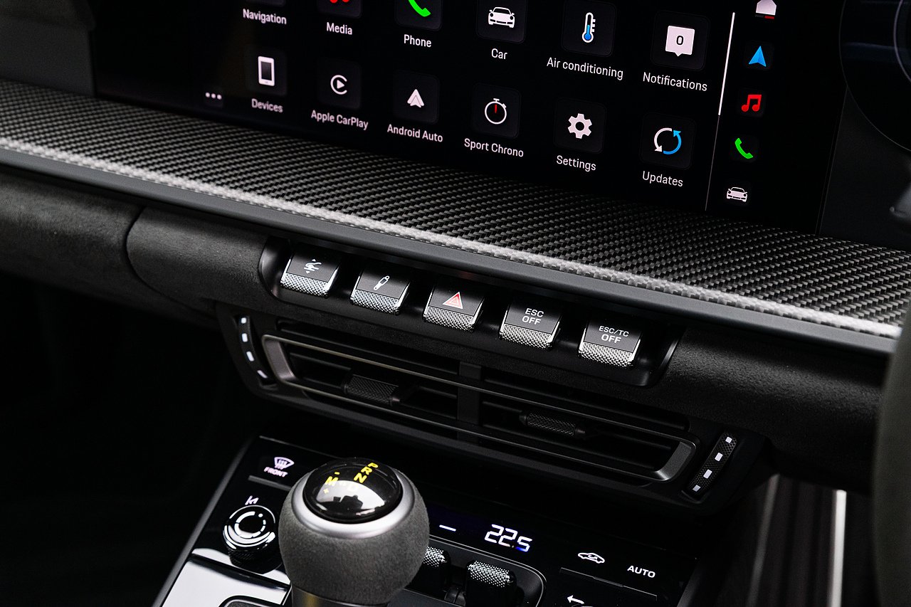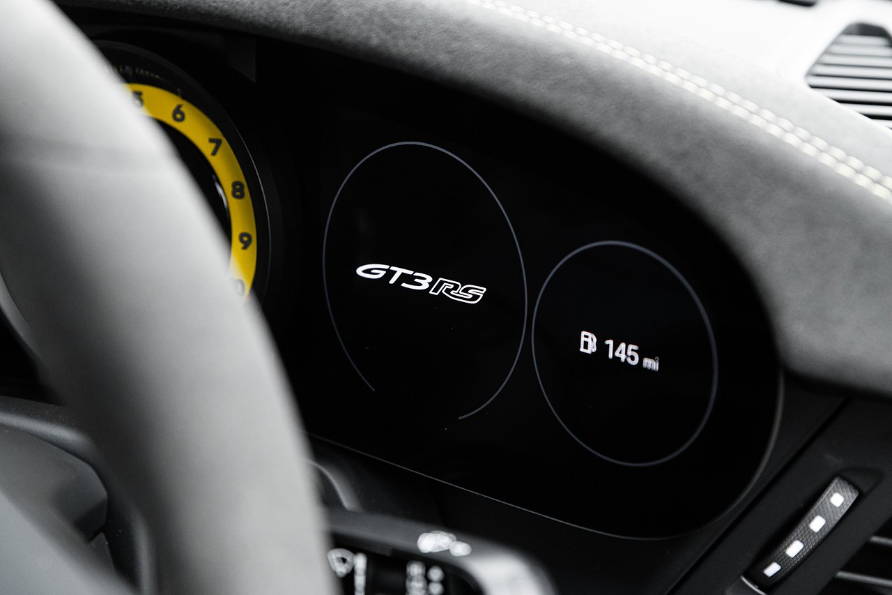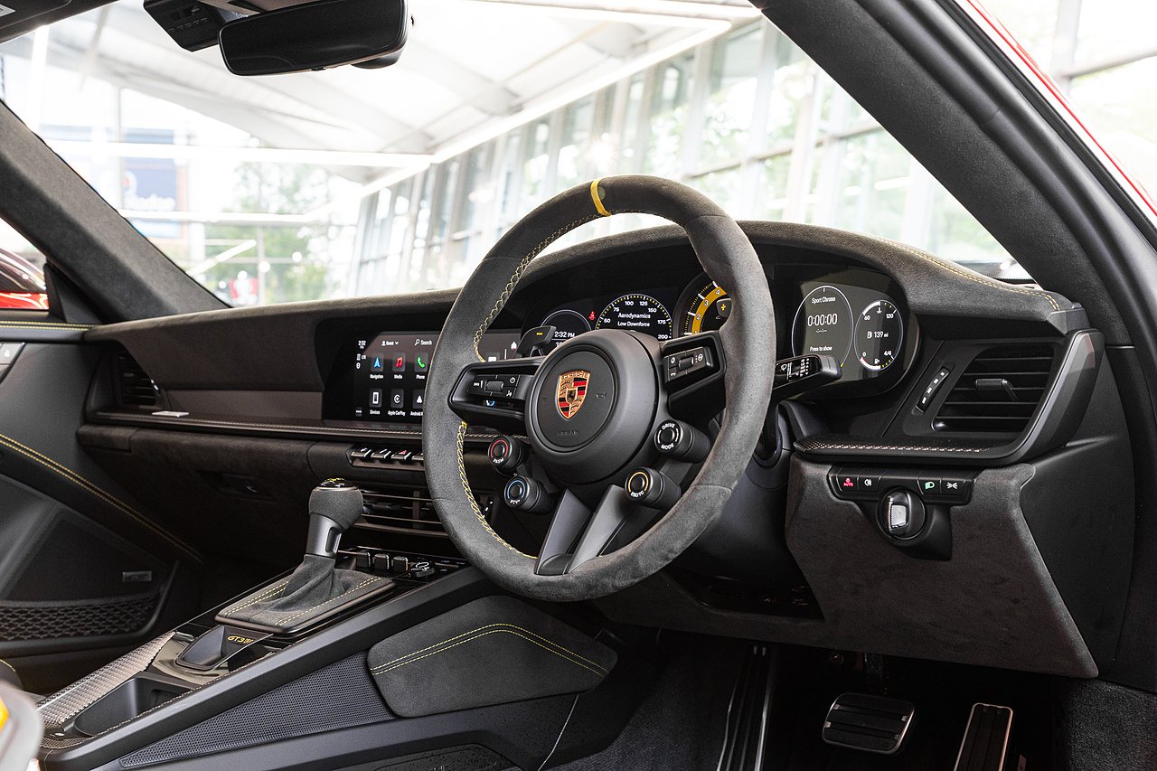 2023 (23 Reg) Porsche 911 992 GT3RS PDK | Finished in Guards Red with Black Leather and Race Tex Interior with Racing Yellow Contrast Stitching | 20inch Front 21inch Rear GT3RS Forged Magnesium Lightweight Wheels Painted in Satin Black | Porsche Ceramic Composite Brakes (PCCB) with Yellow Painted Brake Calipers | Weissach Package | Front Axle Lift System | ClubSport Package with Additional Road Legal 1KG Fire Extinguisher | Roll Cage in Carbon Fibre | Lightweight Carbon Fibre Roof | Front Lid in Visible Carbon Fibre | Carbon Silk Gloss Decorative Inserts | Exterior Mirror Upper Trims in Carbon Fibre | Door Sill Guards in Carbon Fibre | Sport Chrono Package including Mode Switch | Carbon Fibre Full Bucket Seats | BOSE Surround Sound System | Sports Exhaust System in Black | ParkAssist Rear Including Reversing Camera | Apple CarPlay | Tinted LED Main Headlights with Matrix Beam including Porsche Dynamic Light System Plus (PDLS Plus) | Door Opening Loops in Black | Interior Trim Package with Decorative Stitching and Embroidery in Contrasting Colour | Rev Counter in Racing Yellow | Floor Mats in Carbon with Leather Edging | Vehicle Key Painted with Key Pouch in Leather | Seat Belts in Racing Yellow | Chrono Stopwatch Instrument Dial in Racing Yellow | Privacy Glass | PASM Sports Suspension (10mm) Lowered | Power Steering Plus.