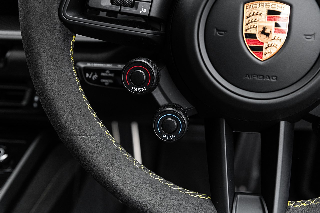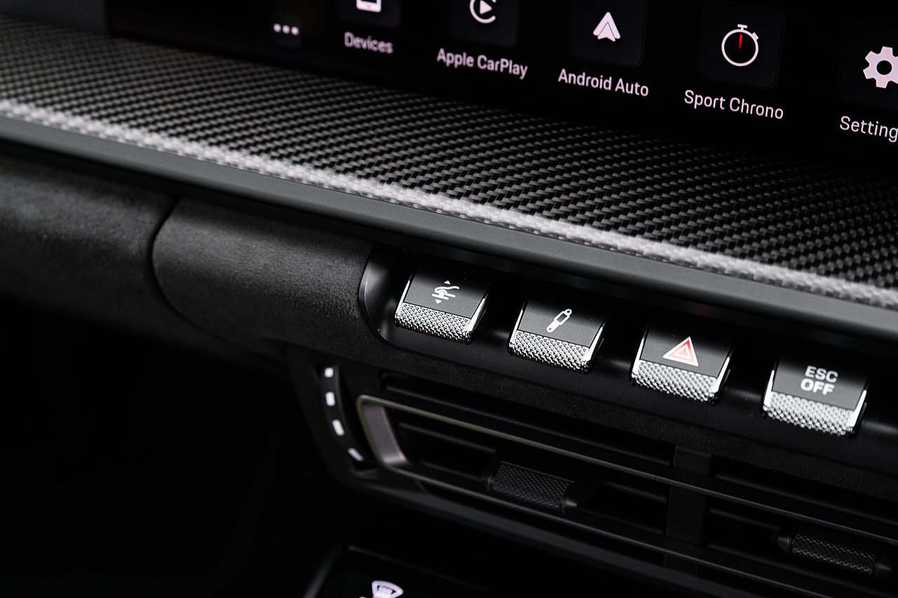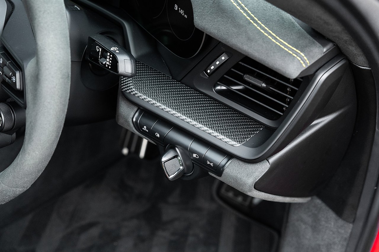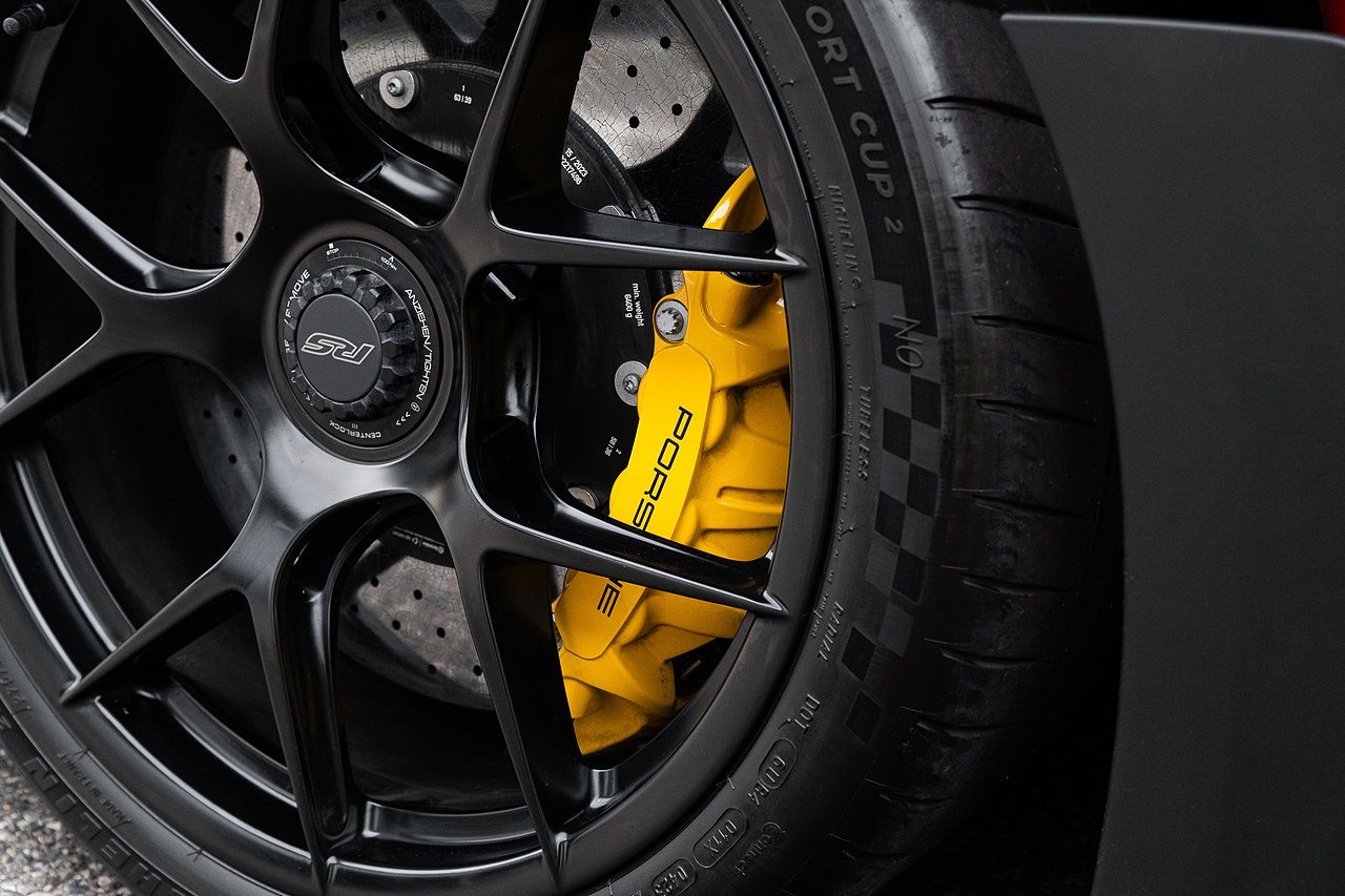2023 (23 Reg) Porsche 911 992 GT3RS PDK | Finished in Guards Red with Black Leather and Race Tex Interior with Racing Yellow Contrast Stitching | 20inch Front 21inch Rear GT3RS Forged Magnesium Lightweight Wheels Painted in Satin Black | Porsche Ceramic Composite Brakes (PCCB) with Yellow Painted Brake Calipers | Weissach Package | Front Axle Lift System | ClubSport Package with Additional Road Legal 1KG Fire Extinguisher | Roll Cage in Carbon Fibre | Lightweight Carbon Fibre Roof | Front Lid in Visible Carbon Fibre | Carbon Silk Gloss Decorative Inserts | Exterior Mirror Upper Trims in Carbon Fibre | Door Sill Guards in Carbon Fibre | Sport Chrono Package including Mode Switch | Carbon Fibre Full Bucket Seats | BOSE Surround Sound System | Sports Exhaust System in Black | ParkAssist Rear Including Reversing Camera | Apple CarPlay | Tinted LED Main Headlights with Matrix Beam including Porsche Dynamic Light System Plus (PDLS Plus) | Door Opening Loops in Black | Interior Trim Package with Decorative Stitching and Embroidery in Contrasting Colour | Rev Counter in Racing Yellow | Floor Mats in Carbon with Leather Edging | Vehicle Key Painted with Key Pouch in Leather | Seat Belts in Racing Yellow | Chrono Stopwatch Instrument Dial in Racing Yellow | Privacy Glass | PASM Sports Suspension (10mm) Lowered | Power Steering Plus.