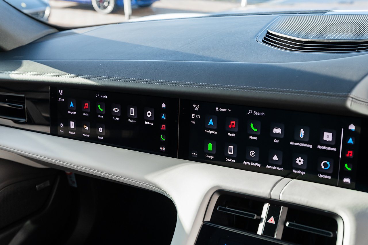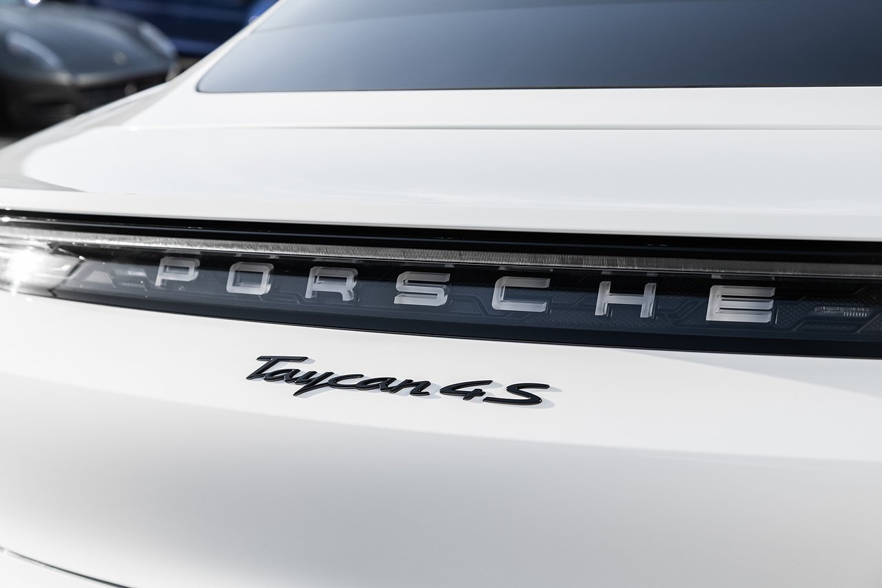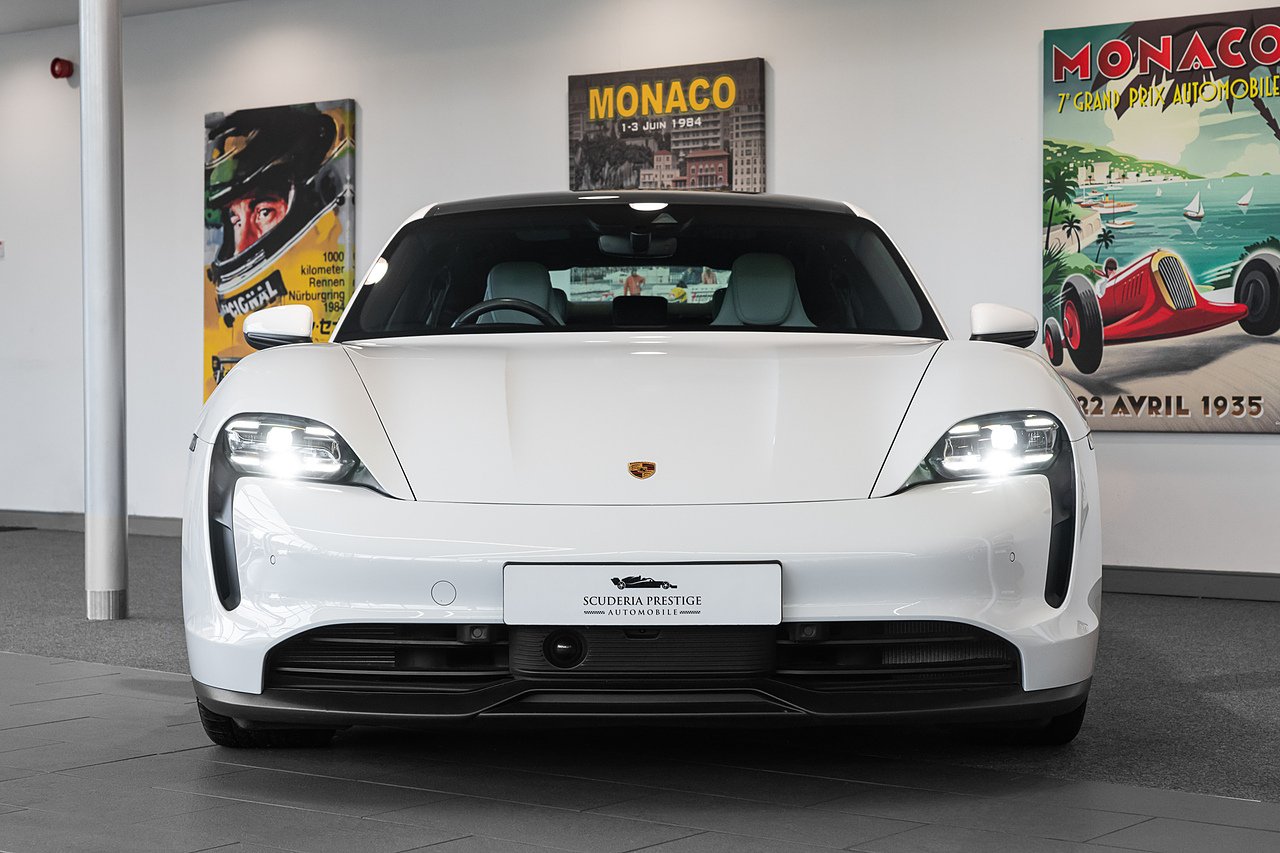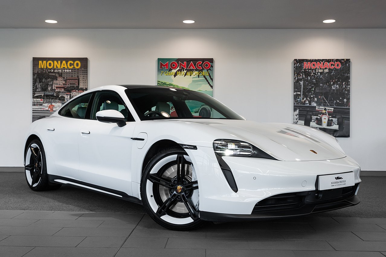 2020 (70 Reg) Porsche Taycan Performance 4S | Finished in White with Black and Crayon Two-Tone Smooth Leather Interior | 21-inch Mission E Design Wheels Painted in Exterior Colour | Porsche Surface Coated Brake (PSCB) with White Brake Calipers | Heated Steering Wheel - i.c.w - Leather Interior | Fixed Glass Panoramic Roof | Front Seat Heating | Front Seat Ventilation | BOSE Surround Sound System | Porsche Electric Sport Sound | Passenger Display | ParkAssist including Reversing Camera | SportDesign Side-skirts | Apple CarPlay | Model Designation Painted in Black High-Gloss | Electric Charging Cover | Windscreen with Grey Top Tint | Automatically Dimming Exterior and Interior Mirrors | 2+1 Rear Seat System | Electric Folding Exterior Mirrors | Public Charing Cable (Type 2) | Smoker Package | 150kW DC On-Board Booster | Mobile Charger Connect | Porsche InnoDrive Including Adaptive Cruise Control | Adaptive Sports Seats (18-Way Electric) with Memory Package | Side Window Trims in Black High-Gloss | Ambient Lighting | Adaptive Air Suspension with Levelling System and Height Adjustment including Porsche Active Suspension Management | LED Main Headlights including Porsche Dynamic Light System Plus (PDLS Plus).