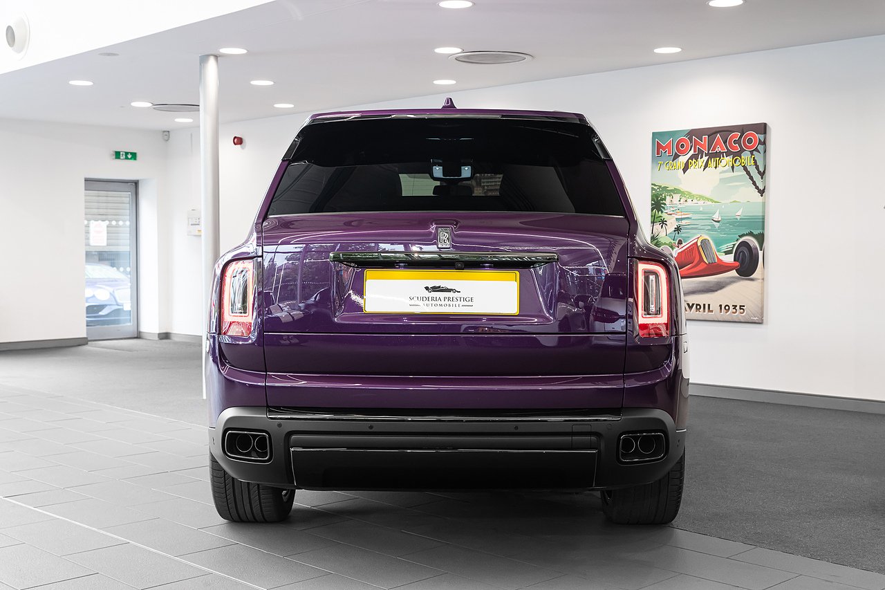 2023 (72 Reg) Rolls-Royce Cullinan Black Badge | Finished in Crystal over Twilight Purple with Cashmere Grey Leather Interior | 22inch Part Polished Black Badge Wheels with Black Brake Calipers | Dark Exterior Package | Rear Theatre Configuration | Shooting Star Headliner | Black Badge Technical Fibre Interior Trim | Rolls-Royce Bespoke Audio | Carbon Treadplate Surround | Illuminated Black Badge Treadplates | Front Ventilated Seats | Front Massage Seats | Black Exterior Stainless Steel Package | Driving Assistance | Surround View Camera | Park Assistant | TV Function | Head-Up Display | Dark Chrome Spirit of Ecstasy | RR Monogram to all Headrests in Tailored Purple | Apple CarPlay | Picnic Tables | Heated Passenger Surround | Wireless Charging | Electrically Deployable Tow Hitch | Lambswool Floor Mats | Extended Leather Headlining | Starlight in Oatmeal | Signature key in Purple | Night Vision with Pedestrian Recognition | Visible Vin Plaque | Contrast Seat Piping in Black | Coloured Stitching in Tailored Purple | Instrument Panel Top Stitch | Seat Belts in Slate | Comfort Entry System | Rear Privacy Glass | Extended Veneer Centre Line | Ambient Air Package | Park Distance Control | High Beam Assistance | Active Cruise Control with Stop and Go Function | Stolen Vehicle Tracking | Loading Assistant | Thicker Black Steering Wheel | Universal Garage Door Opener.
