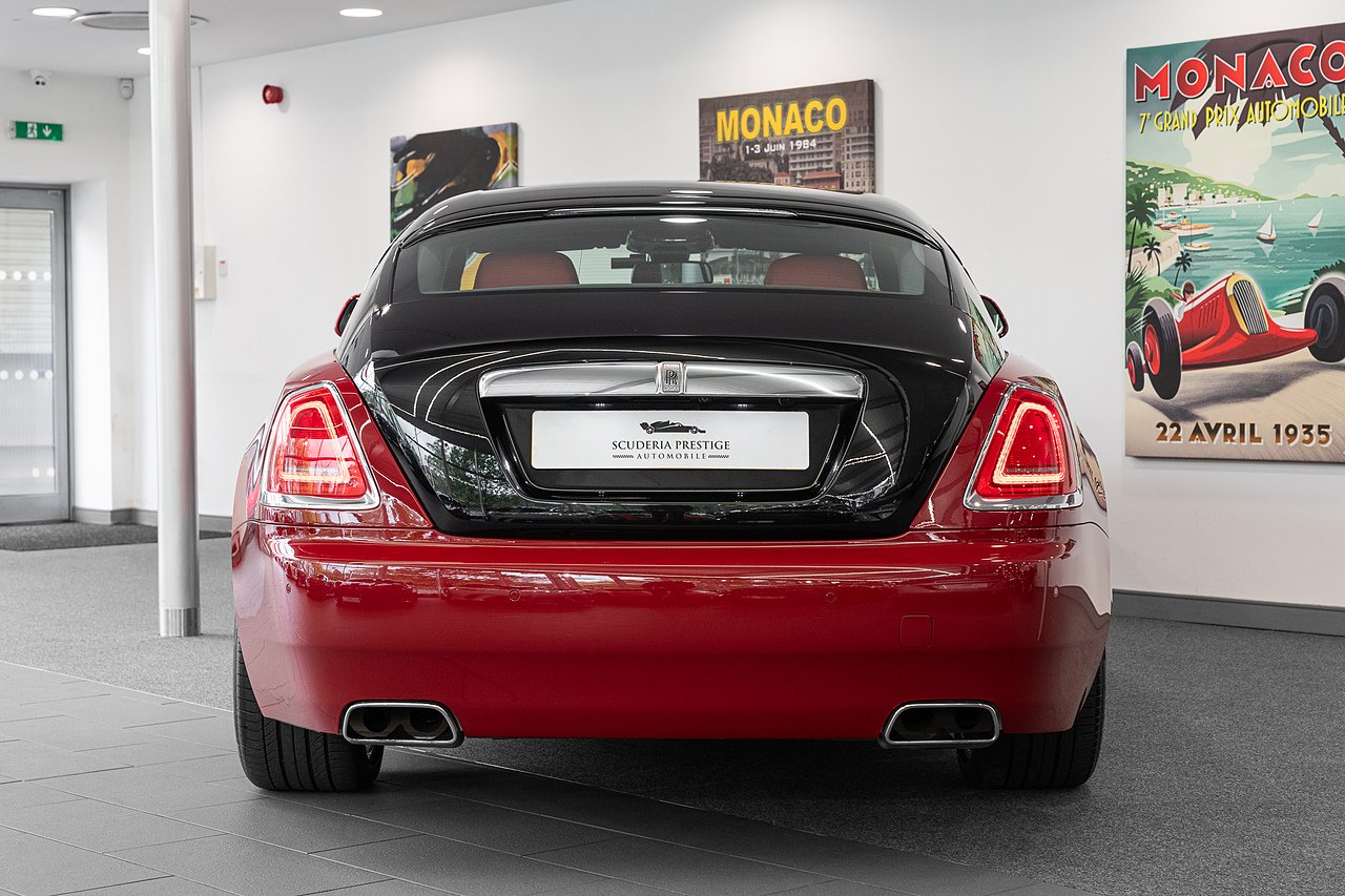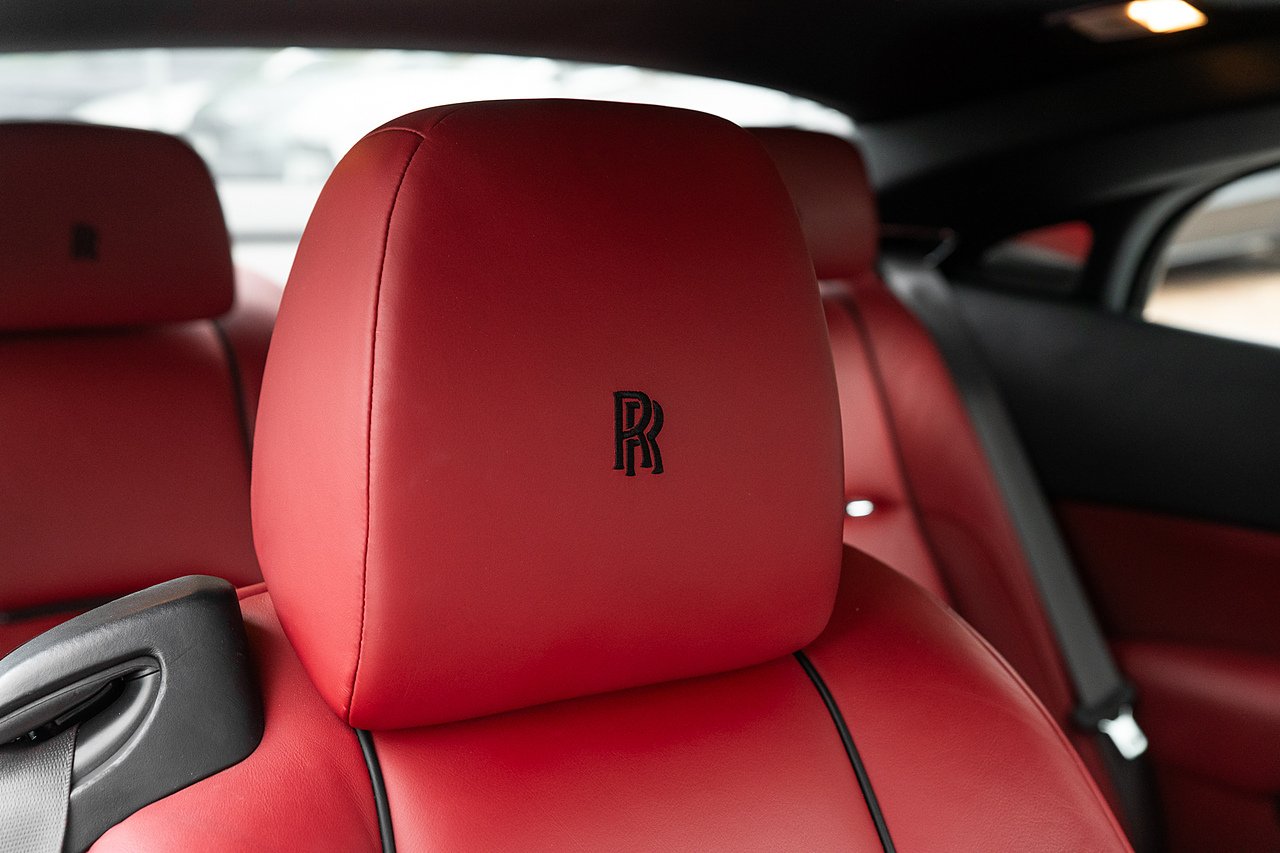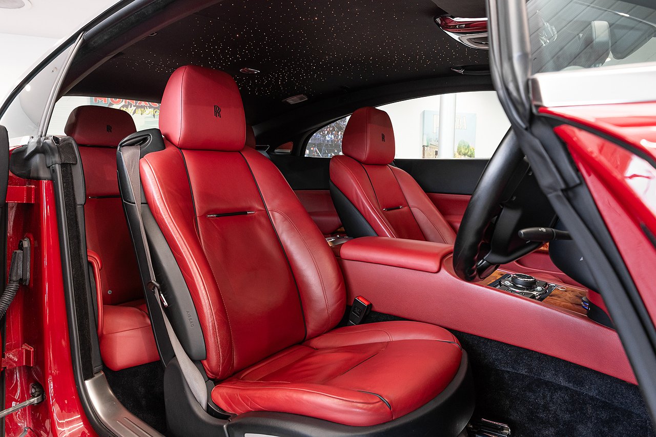 2014 (64 Reg) Rolls-Royce V12 Wraith | Finished in Ensign Red II with Diamond Black Contrast Paint with Hotspur Red and Black Extended Leather Interior | 21inch 5-Spoke Forged Silver Alloy Wheels | The Wraith Package | Starlight Headliner | Rolls-Royce Bespoke Audio | Drivers Assistance 3 | Head-Up Display | Rear View Camera with Top View | Side View Camera | Lambswool Floor Mats | Chrome Visible Exhausts | Spirit of Ecstasy | Comfort Entry System | Convenience Door Pocket Lights | High-Beam Assistance | Lane Departure Warning | Active Cruise with Stop and Go | Stolen Vehicle Tracking | USB and Bluetooth | Mobile Application Preparation | Night Vision | RR Monogram to All Headrests.
