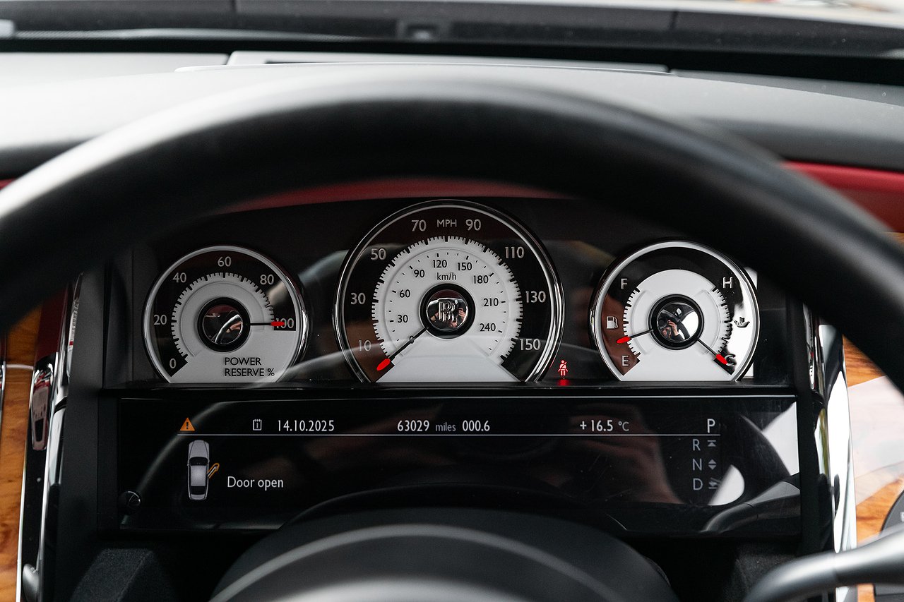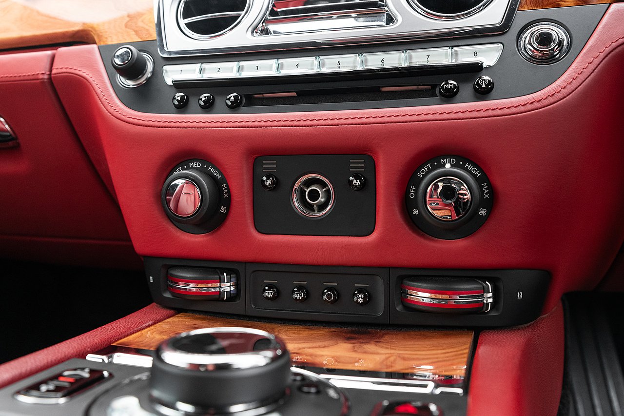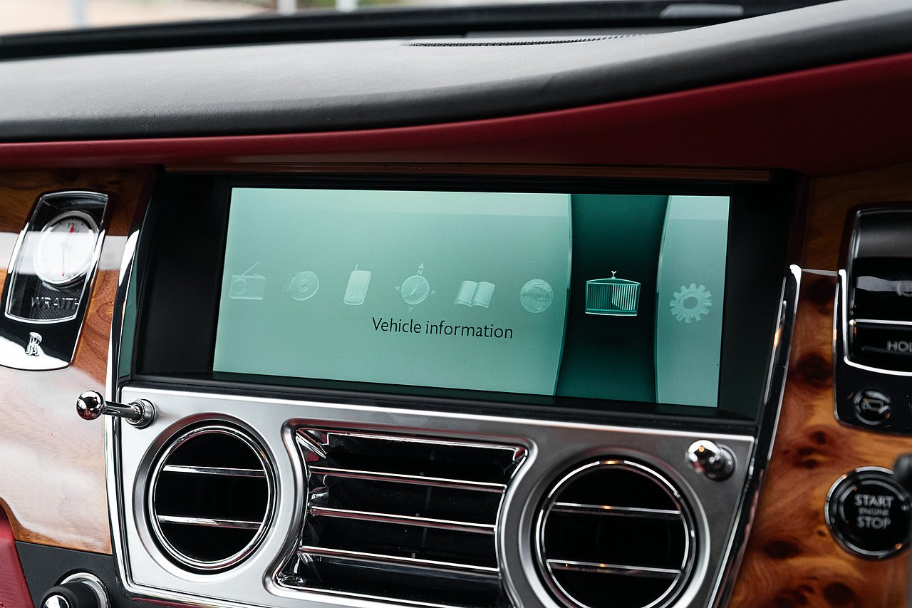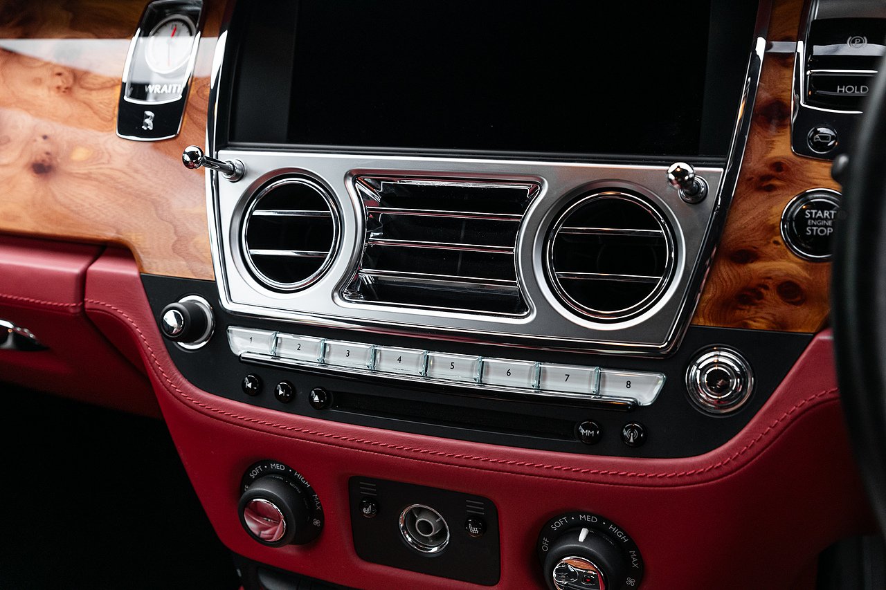 2014 (64 Reg) Rolls-Royce V12 Wraith | Finished in Ensign Red II with Diamond Black Contrast Paint with Hotspur Red and Black Extended Leather Interior | 21inch 5-Spoke Forged Silver Alloy Wheels | The Wraith Package | Starlight Headliner | Rolls-Royce Bespoke Audio | Drivers Assistance 3 | Head-Up Display | Rear View Camera with Top View | Side View Camera | Lambswool Floor Mats | Chrome Visible Exhausts | Spirit of Ecstasy | Comfort Entry System | Convenience Door Pocket Lights | High-Beam Assistance | Lane Departure Warning | Active Cruise with Stop and Go | Stolen Vehicle Tracking | USB and Bluetooth | Mobile Application Preparation | Night Vision | RR Monogram to All Headrests.