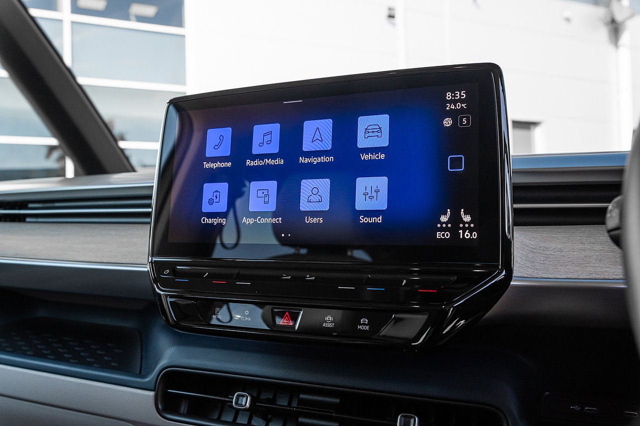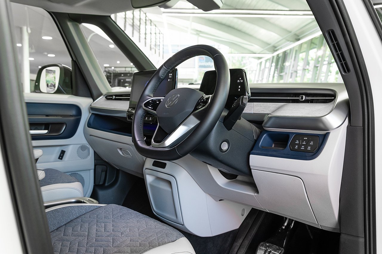 2024 (73 Reg) Volkswagen ID. Buzz Pro Style 77kWh | Finished in Candy White with X-Blue-Mistral Miwo Cloth Interior | 21inch Bromberg Bi-Colour Alloy Wheels | Heated Leather Steering Wheel | Heated Front Seats | Rear View Camera | Front and Rear Parking Sensors | 5 USB-C Charging Ports | In Car Entertainment App-Connect with Wireless Apple CarPlay and Android Auto | 9-Speaker Audio System | Wireless Smartphone Charger | 10inch Touch Screen Monitor | Adaptive Cruise Control | 2-Zone Climatronic Climate Control with Enhanced Air Filter and Stationary Air Conditioning | Removable Centre Console with Storage Compartments | Parking Assistant | Keyless Entry System.